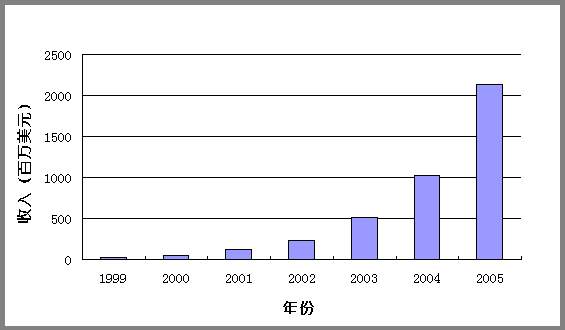 2005年市場收入預(yù)計達(dá)到21.4億美元。年增長率為108.0% 。高增長率將在預(yù)測期內(nèi)持續(xù)下去,然而需求的重點將由大企業(yè)轉(zhuǎn)向中小型企業(yè)。實際上,統(tǒng)一信息服務(wù)市場占整個歐洲ASP市場的比重也由1999年的8.7%增加到2005年的15.6%