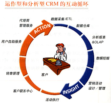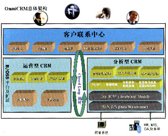 經(jīng)營(yíng)分析型CRM: OmniVision是OmniCRM方案中經(jīng)營(yíng)分析型CRM的核心,它采用數(shù)據(jù)倉(cāng)庫(kù)、ETL、OLAP分析、靈活報(bào)表展現(xiàn)及數(shù)據(jù)挖掘等技術(shù),結(jié)合電信業(yè)務(wù)的深厚經(jīng)驗(yàn),進(jìn)行用戶分析、業(yè)務(wù)分析、收益分析、大客戶分析、營(yíng)銷分析、競(jìng)爭(zhēng)分析、服務(wù)質(zhì)量分析等主題分析。 客戶聯(lián)系中心: OmniContactCenter是OmniCRM方案中的客戶聯(lián)系中心,包括多媒體呼叫中心、網(wǎng)上用戶自服務(wù)系統(tǒng)(網(wǎng)上營(yíng)業(yè)廳)、直郵傳真處理中心等。所有的市場(chǎng)活動(dòng)都是由客戶聯(lián)系中心傳遞給客戶的,所有的客戶反饋和請(qǐng)求都是由這里反饋給分析系統(tǒng)的。 大客戶管理:OmniVIP OmniVIP是亞信公司結(jié)合深厚的行業(yè)知識(shí),專門針對(duì)集團(tuán)大客戶、商業(yè)大客戶、潛在大客戶等各類電信大客戶,從分析和運(yùn)營(yíng)兩個(gè)方面為各電信公司提供的完整而領(lǐng)先的大客戶管理方案,它能夠?yàn)檫\(yùn)營(yíng)商提供現(xiàn)有及潛在大客戶的全方位視圖,包括客戶行為、業(yè)務(wù)情況、商業(yè)獲利率、競(jìng)爭(zhēng)情況等,挖掘潛在商機(jī),使利潤(rùn)最大化;能夠使運(yùn)營(yíng)商有效地降低成本;能夠使運(yùn)營(yíng)商為大客戶提供真正的個(gè)性化服務(wù);能夠使運(yùn)營(yíng)商預(yù)測(cè)、吸引并發(fā)展?jié)撛诘拇罂蛻;能夠使運(yùn)營(yíng)商有效地管理大客戶服務(wù)人員,提高客戶的滿意度和忠誠(chéng)度;能夠通過(guò)OmniContactCenter、代理商、營(yíng)業(yè)廳、SMS、Email等全面的渠道管理,幫助電信運(yùn)營(yíng)商對(duì)大客戶進(jìn)行“全員、全程、全方位”服務(wù),從而全方位地為大客戶提供最完善優(yōu)質(zhì)的服務(wù)。 市場(chǎng)管理:OmniMarketing OmniMarketing根據(jù)分析系統(tǒng)得出的結(jié)論,產(chǎn)生相應(yīng)的市場(chǎng)活動(dòng)發(fā)送給運(yùn)營(yíng)型CRM部分執(zhí)行,同時(shí)將執(zhí)行結(jié)果和反饋收集回來(lái)進(jìn)行比較、評(píng)價(jià)和進(jìn)一步的分析,以期設(shè)計(jì)出更合理的資費(fèi)和更貼切的業(yè)務(wù)給用戶。 銷售管理:OmniSFA 隨著競(jìng)爭(zhēng)的加劇,運(yùn)營(yíng)商的銷售也將從傳統(tǒng)的柜臺(tái)坐等的經(jīng)營(yíng)模式轉(zhuǎn)變成有針對(duì)性的主動(dòng)出擊發(fā)展客戶的模式。銷售管理系統(tǒng)就是提供了針對(duì)銷售人員的銷售輔助工具,其中包括任務(wù)分配與下達(dá)、日程安排、客戶資料管理、銷售機(jī)會(huì)管理、銷售漏斗、報(bào)價(jià)管理、訂單合同管理、銷售業(yè)績(jī)考評(píng)和資金評(píng)定等模塊。 通過(guò)OmniSFA,銷售工作將按照科學(xué)化正規(guī)化流程化的方式來(lái)進(jìn)行。 運(yùn)作型和分析型CRM的互動(dòng)循環(huán)
