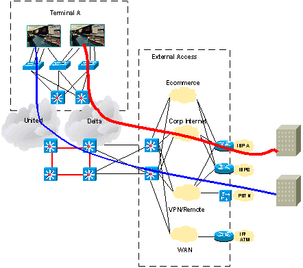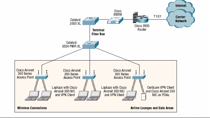思科智能機(jī)場(chǎng)解決方案采用了多種聯(lián)網(wǎng)技術(shù)和拓?fù)浣Y(jié)構(gòu):電子商務(wù)基礎(chǔ)設(shè)施(物理層)、智能網(wǎng)絡(luò)服務(wù)和大量的可行設(shè)計(jì)和架構(gòu)。思科機(jī)場(chǎng)網(wǎng)絡(luò)架構(gòu)由經(jīng)過思科企業(yè)解決方案設(shè)計(jì)測(cè)試實(shí)驗(yàn)室預(yù)測(cè)試的成熟網(wǎng)絡(luò)部件組成。這些經(jīng)過測(cè)試的設(shè)計(jì)則是基于經(jīng)由構(gòu)建全球最大的網(wǎng)絡(luò)而得出的最佳實(shí)踐。測(cè)試結(jié)果請(qǐng)參見"解決方案參考設(shè)計(jì)指南
