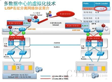 總之,不同的應(yīng)用需要不同類型的網(wǎng)絡(luò)連接特性,網(wǎng)絡(luò)的第二層和三層連接的組合可能會被要求支持不同的應(yīng)用。思科ASR1000提供的領(lǐng)先的數(shù)據(jù)中心的網(wǎng)絡(luò)虛擬化技術(shù)對上述應(yīng)用提供了完美的智能支持,局域網(wǎng)二層擴(kuò)展技術(shù) OTV(Overlay Transport Virtualization) 和虛擬化精確定位技術(shù)LISP(Locator/ID Separation Protocol )具備諸多領(lǐng)先優(yōu)勢,通過LISP和OTV的組合可以解決虛擬化資源的遷移和業(yè)務(wù)連續(xù)等技術(shù)難題。