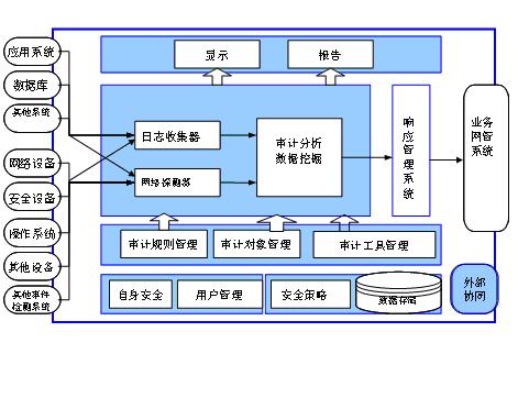 圍繞《薩班斯法案》第404條款的基本要求,結(jié)合運營商的業(yè)務支撐系統(tǒng)運維特點,面向業(yè)務系統(tǒng)的安全審計系統(tǒng)一般應具備以下功能: