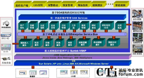 新太視頻監(jiān)控聯(lián)網(wǎng)管理平臺采用J2EE開放式架構(gòu),可以在WINDOWS/LINUX操作系統(tǒng)下運(yùn)行,具有強(qiáng)大的伸縮性。