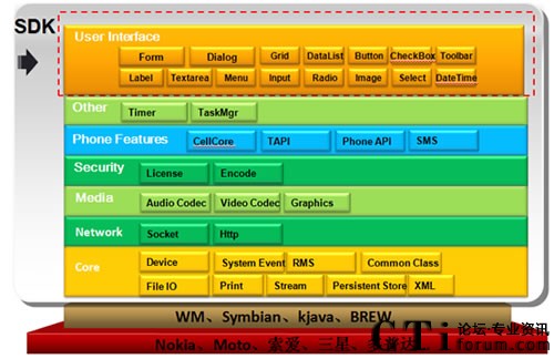 據(jù)新太科技內(nèi)部相關人員介紹,mWAY的技術(shù)架構(gòu),一方面可以支持電信網(wǎng)絡各種各樣的接入,保證和運營商已有的網(wǎng)絡的互聯(lián)互通,同時也支持和移動互聯(lián)網(wǎng)手機之間的連接,支持相關音頻、視頻的呼叫、傳送。業(yè)務接口可以給第三方應對研發(fā)需求,手機終端有相關的引擎,滿足手機終端的業(yè)務研發(fā)的需求,這部分有一個手機客戶端軟件,是一個移動性的引擎。這個引擎移植在手機終端客戶端上,給上層提供統(tǒng)一的解析開放系統(tǒng)。