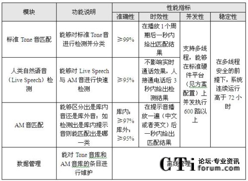 圖中,Tone音匹配采用模式匹配方法,可以實現(xiàn)對振鈴音,忙音,空號,不可達音等100多種標準提示音的識別。AM(Answering Machine)音匹配主要負責(zé)識別傳真機、自動答錄機等機器語音,同樣采用模式匹配方法,將收到的語音與標準樣本庫進行比對。人類自然語音檢測的功能主要通過人真實聲音的檢測,來判斷是否需要進行語音匹配。