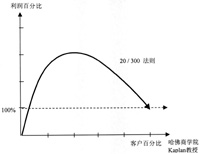 對(duì)客戶群的分析,經(jīng)濟(jì)理論界有一個(gè)著名的80-20理論,即在一個(gè)企業(yè)中,通常是20%的客戶貢獻(xiàn)了80%的利潤,而有可能40%的客戶加起來的利潤還不到1%;而依照20-300理論,實(shí)際上20%的客戶,貢獻(xiàn)著企業(yè)300%的利潤,言外之意就是說,剩下的客戶可能是“吃”掉利潤的人群。但是對(duì)于剩下的80%客戶,銀行可能要花費(fèi)更多的人力、物力去提供服務(wù),所以實(shí)際上銀行或企業(yè)很有可能在做虧本買賣。因此,分析客戶群,調(diào)配資源非常重要(如下圖所示)。