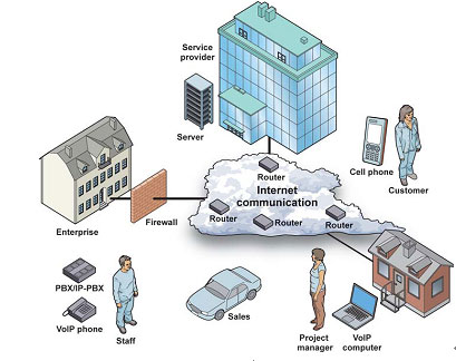 企業(yè)網(wǎng)絡融合是在互聯(lián)網(wǎng), 固定網(wǎng), 移動網(wǎng)三網(wǎng)合一的基礎(chǔ)上, 由企業(yè)服務提供商提供的可以控制和管理的融合通信平臺, 將語音、視頻、圖片、文件傳送等功能統(tǒng)一實現(xiàn)。企業(yè)員工可在不同地點, 通過不同終端接入此平臺,內(nèi)部語音通信可以直接通過企業(yè)內(nèi)部IP網(wǎng)絡進行,國內(nèi)外分支機構(gòu)間語音通信,只需要支付IP網(wǎng)絡接入的費用,不但提供了靈活高效的通信手段, 也節(jié)省了原本高額的通信費用。