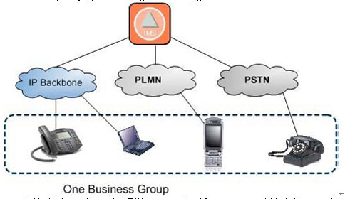 與終端的類型和接入方式無關(guān)。企業(yè)或集團用戶的成員可以使用不同類型的終端, 通過不同的接入網(wǎng)絡接入到IMS。在IMS的控制下完成多媒體業(yè)務的通信過程,實現(xiàn)虛擬專用網(wǎng)絡的應用。