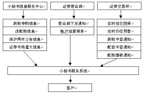 潤能公司小秘書服務中心每日處理各種公告信息,重大財經(jīng)信息等,并主動發(fā)送到位于券商營業(yè)部的小秘書智能化系統(tǒng)中,由系統(tǒng)對信息進行個性化處理后發(fā)送給客戶。