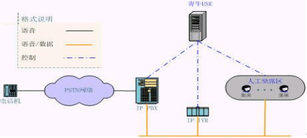 青牛IVR集群方案將原來放在PBX后面的IVR"前移",PBX的LINK只有和坐席相關(guān)的信息,大量的和IVR相關(guān)的呼叫信息被剝離出去,由青牛網(wǎng)絡(luò)IVR直接自行處理。根據(jù)統(tǒng)計(jì),自動(dòng)業(yè)務(wù)的呼叫量在整個(gè)客服中心呼叫量中占大多數(shù),當(dāng)呼叫量越大的時(shí)候,該方案的優(yōu)勢(shì)就越明顯。