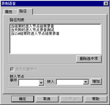 有兩種方式,一種是通過ZingServ的錄制語音模塊來靈活設(shè)置錄音的起點(diǎn)、終點(diǎn)和錄音長度,如客戶投訴和客戶建議大都通過這種方式來,這時錄音文件的名稱可以使用自定義變量,便于在二次開發(fā)中使用。