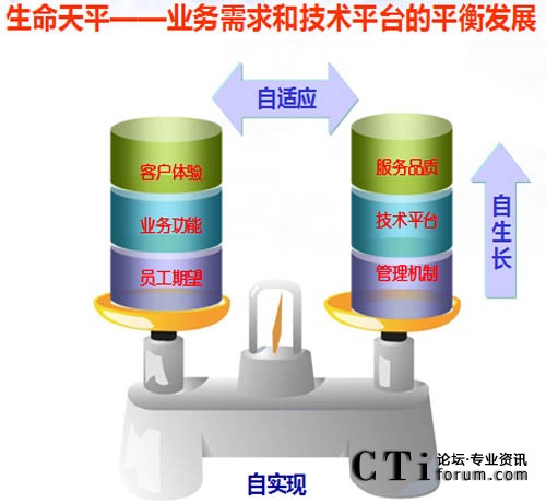 “生命天平”所體現(xiàn)的聯(lián)絡(luò)中心運(yùn)營管理是一個動態(tài)持續(xù)的過程,客戶體驗(yàn)、業(yè)務(wù)功能和員工期望是不斷變化的,這就要求平臺要具有生命力,要不斷滿足客戶和業(yè)務(wù)新的需求,能夠主動的根據(jù)客戶體驗(yàn)提升服務(wù)品質(zhì),跟隨業(yè)務(wù)功能變化提升技術(shù)平臺,結(jié)合員工期望,完善和改進(jìn)管理機(jī)制。使聯(lián)絡(luò)中心始終處于自生長、自適應(yīng)、自實(shí)現(xiàn)的平衡調(diào)節(jié)過程中。