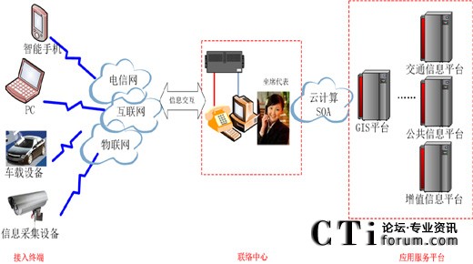 聯(lián)絡中心:可通過電信網(wǎng)、互聯(lián)網(wǎng)、物聯(lián)網(wǎng)等各種方式同用戶互動,可采用語音、短信、即時消息、視頻等各種媒體形式。聯(lián)絡中心可接受各種信息、用戶需求提供相應服務,通過云計算、SOA技術(shù)與后臺各種應用系統(tǒng)互聯(lián),可隨時獲取用戶所需服務及信息并推送到終端。