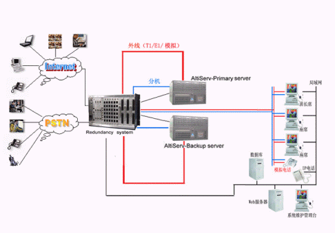 上海市城建12319是一個(gè)以12319為一級(jí)網(wǎng)絡(luò)中心、16個(gè)不同職能部分為二級(jí)網(wǎng)絡(luò)中心、搶修維修執(zhí)行機(jī)構(gòu)或者部門(mén)為三級(jí)網(wǎng)絡(luò)的呼叫中心,完全支持各級(jí)網(wǎng)絡(luò)之間數(shù)據(jù)和語(yǔ)音信息的同步轉(zhuǎn)移。奧迪堅(jiān)針對(duì)城建12319的建設(shè),除了采用先進(jìn)的分布式技術(shù)有效地把16條不同的城建事業(yè)服務(wù)統(tǒng)一到12319語(yǔ)音平臺(tái),構(gòu)建了一個(gè)完整的"市民→熱線中心→責(zé)任單位→市民"的閉路循環(huán)的城市建設(shè)管理工作的服務(wù)熱線;而且,其安全保護(hù)冗余切換系統(tǒng)成為上海市12319呼叫中心中保證系統(tǒng)安全運(yùn)行的重要選擇。上海市12319冗余系統(tǒng)包括AltiServ主機(jī)和備機(jī),以及一個(gè)A/B線路切換器,正常情況下,A/B切換器將所有線路與主機(jī)保持連接,所以電話處理由主機(jī)完成,而備機(jī)則實(shí)時(shí)監(jiān)測(cè)主機(jī)并同步配置信息。如果主機(jī)的服務(wù)意外停止了或損壞了,服務(wù)將會(huì)在幾秒鐘內(nèi)切換到備機(jī)上,不會(huì)影響到12319正常業(yè)務(wù)的開(kāi)展,有效地防止系統(tǒng)意外事故造成的數(shù)據(jù)的丟失和服務(wù)的中斷,保障了12319系統(tǒng)的穩(wěn)定性和服務(wù)的連續(xù)性。