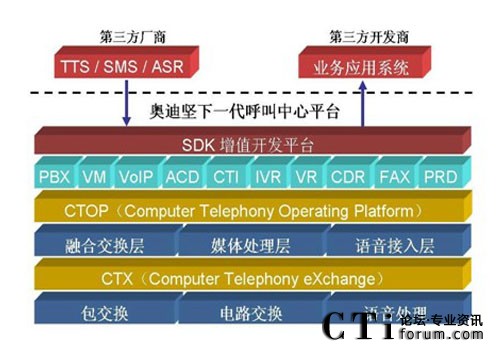 傳統(tǒng)型的語(yǔ)音交換機(jī)在設(shè)計(jì)之初,只側(cè)重于語(yǔ)音交換能力,并沒(méi)有考慮到呼 叫中心這種需要集成數(shù)據(jù)的應(yīng)用模式,因此基于傳統(tǒng) TDM 交換機(jī)的呼叫中心系 統(tǒng)都需要外掛 CTI 服務(wù)器,至于基于語(yǔ)音板卡、傳統(tǒng)型 IP-PBX 或軟交換的呼叫 中心系統(tǒng)也不例外。而奧迪堅(jiān) IP 呼叫中心平臺(tái)在設(shè)計(jì)伊始,就專門(mén)針對(duì)于呼叫 中心的應(yīng)用,在底層已經(jīng)將 PBX、CTI、IVR 等核心功能緊密地融合在一起了, 在系統(tǒng)集成度方面遠(yuǎn)遠(yuǎn)優(yōu)于傳統(tǒng) TDM 交換機(jī)、語(yǔ)音板卡、傳統(tǒng)型 IP-PBX 或軟 交換的解決方案。