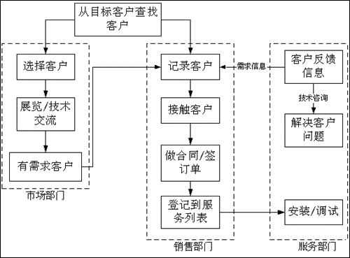 公司從很早就認(rèn)識(shí)到經(jīng)營(yíng)中存在的這些問(wèn)題,一直在尋找解決的方法和途徑。我們逐漸認(rèn)識(shí)到,公司經(jīng)營(yíng)亟待解決的問(wèn)題就是如何高效地處理客戶信息、有效地進(jìn)行客戶關(guān)系的管理,這是影響到公司能否獲得更大發(fā)展的關(guān)鍵。因?yàn)樵诠緞倓偲鸩綍r(shí),業(yè)務(wù)人員面對(duì)的是很少的客戶群,他們對(duì)每個(gè)客戶的具體情況非常熟悉,能夠根據(jù)每個(gè)客戶的不同需求特點(diǎn)提供相應(yīng)的產(chǎn)品和服務(wù)。而公司的管理人員面對(duì)的也是很少的業(yè)務(wù)人員,他們可以清楚地掌握每個(gè)業(yè)務(wù)人員的工作情況,并有針對(duì)性的加以監(jiān)督管理。公司的業(yè)務(wù)部門設(shè)置相對(duì)簡(jiǎn)單,彼此的溝通和配合也比較容易進(jìn)行。這時(shí)候幾乎不存在客戶的管理問(wèn)題。但當(dāng)公司的業(yè)務(wù)成倍增長(zhǎng)后,業(yè)務(wù)人員和客戶的數(shù)量都空前膨脹,這時(shí)候簡(jiǎn)單的管理手段就承擔(dān)不了如此沉重的管理任務(wù),公司的經(jīng)營(yíng)就會(huì)出現(xiàn)混亂。突出的表現(xiàn)就是客戶、業(yè)務(wù)人員失控,公司的業(yè)務(wù)拓展陷入無(wú)序狀態(tài),失去繼續(xù)增長(zhǎng)的動(dòng)力。在這種情況下,要使公司的經(jīng)營(yíng)走出泥潭,必須要引入的就是先進(jìn)的客戶關(guān)系管理的觀念和手段。