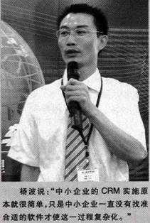 楊波說:“中小企業(yè)的CRM實(shí)施原本就很簡(jiǎn)單,只是中小企業(yè)一直沒有找準(zhǔn)合適的軟件才使這一過程復(fù)雜化。”