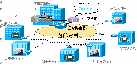 國航營銷部需要在已有的網(wǎng)絡(luò)平臺上,建立一個能進(jìn)行總部與各分公司之間交互式溝通的環(huán)境,需要一種網(wǎng)絡(luò)多媒體協(xié)同工作的應(yīng)用。