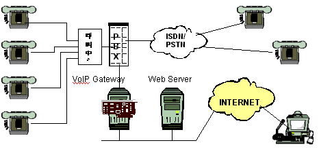 PBX,它用于在LAN上完成呼入及呼出操作。這種方案對小型辦公室非常有用。它不僅可以實(shí)現(xiàn)傳統(tǒng)的硬件PBX的所有特性,而且還具有更多的優(yōu)勢,因?yàn)檫@種PBX是通過軟件的方式來實(shí)現(xiàn)的。