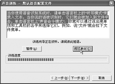 麥克風(fēng)設(shè)置完成以后,系統(tǒng)會進行語音識別的訓(xùn)練。首先要求您確認一些聲音基本信息,接著點擊“下一步”,系統(tǒng)給出一個例句,您可以點擊“示例”按鈕聽一聽應(yīng)該如何朗讀這樣的句子。之后,再次點擊“下一步”就可以開始語音訓(xùn)練了。
