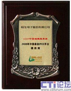恒生及HSIPCC,已連獲多項殊榮: 2008年中國最佳呼叫中心“金耳嘜大獎”之“2008中國最佳呼叫中心年度技術產品獎”;2008年度全球IP通信大獎之“2008年中國最佳IP呼叫中心提供商”、VOIP中國網之“2008年中國最佳IPCC平臺提供商”、 中國惟一國家級呼叫中心行業(yè)協(xié)會CNCCA 之“2007年度中國最佳呼叫中心年度技術產品”獎等。