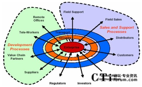 不同公司,生辰八字不同,發(fā)家史不同,決定了企業(yè)利益戰(zhàn)略點(diǎn)的不同,對(duì)統(tǒng)一通信的市場(chǎng)切入點(diǎn)和定位目標(biāo)就存在一些差異。軟件商采用以桌面軟件為基礎(chǔ),從上往下滲透的策略,設(shè)備商采用從基礎(chǔ)架構(gòu)出發(fā),從下往上突破的策略,但對(duì)統(tǒng)一通信的基本認(rèn)識(shí)可統(tǒng)歸為:以用戶為中心,實(shí)現(xiàn)跨時(shí)空的無(wú)限溝通。這里拋棄了網(wǎng)絡(luò)、終端、融合、平臺(tái)等技術(shù)層面的東西,而是完全從業(yè)務(wù)層面迎合了企業(yè)客戶的基本需求,企業(yè)聽(tīng)到了自然心動(dòng)!耙赂幌刃蘼贰保髽I(yè)要發(fā)展,就必須先修好這條通信大道。從中,我們也可看出統(tǒng)一通信不是一種技術(shù),也不是一項(xiàng)應(yīng)用,而是一種需求、一種企業(yè)對(duì)網(wǎng)絡(luò)、通信技術(shù)成熟發(fā)展之后的需求滿足的期望。此外,通過(guò)對(duì)這些主要廠家的UC解決方案進(jìn)行分析,也可以發(fā)現(xiàn),無(wú)論大家的口號(hào)怎樣,PPT里的網(wǎng)絡(luò)架構(gòu)如何多變,卻一致地采用SIP協(xié)議進(jìn)行會(huì)話控制,用IP協(xié)議進(jìn)行數(shù)據(jù)傳輸,通過(guò)應(yīng)用服務(wù)器(或類似網(wǎng)元)提供各種統(tǒng)一通信功能。