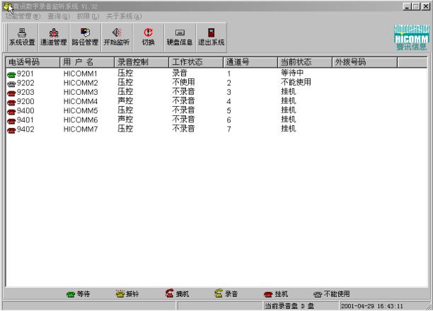 系統(tǒng)管理員根據(jù)權(quán)限可以對系統(tǒng)的任一路電話進(jìn)行監(jiān)聽,此時(shí)被監(jiān)聽的說話雙方絲毫不會(huì)有所察覺,