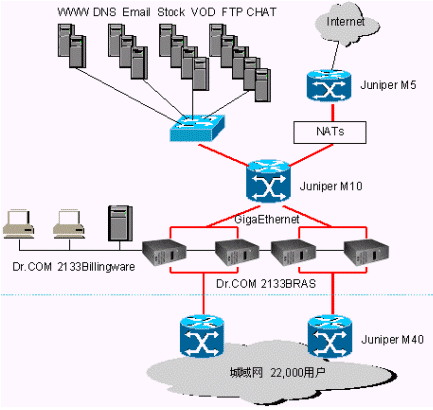 目前寬帶網(wǎng)上對用戶認證計費的技術(shù)手段有三種,一是二層的PPPOE技術(shù),二是二、三層通用的WEB認證技術(shù)。三是運用隧道技術(shù)的L2TP。三種技術(shù)各有千秋,小區(qū)運營商應該根據(jù)自己網(wǎng)絡的特點和投資情況審慎選擇。比較一致的看法是采用ADSL接入方式的運營商必須選用PPPOE技術(shù),采用FTTB+LAN接入方式的運營商則必須選擇非PPPOE技術(shù),三層的WEB認證技術(shù)是最省錢也是最易行的解決方案。為了說明這個問題,下面我們結(jié)合一個寬帶網(wǎng)絡實例,將Dr.COM的三層認證技術(shù)與PPPOE作一個對比。