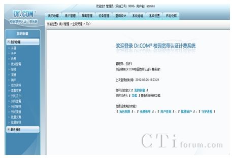 在認(rèn)證計費(fèi)系統(tǒng)軟件部署中,城市熱點(diǎn)采用了全新的B/S版本,系統(tǒng)采用Oracle數(shù)據(jù)平臺,提供具有高效穩(wěn)定的數(shù)據(jù)后臺架構(gòu)。該版本具有部署快捷,易于維護(hù)的優(yōu)勢,方便了后臺維護(hù)人員在系統(tǒng)的管理操作過程。