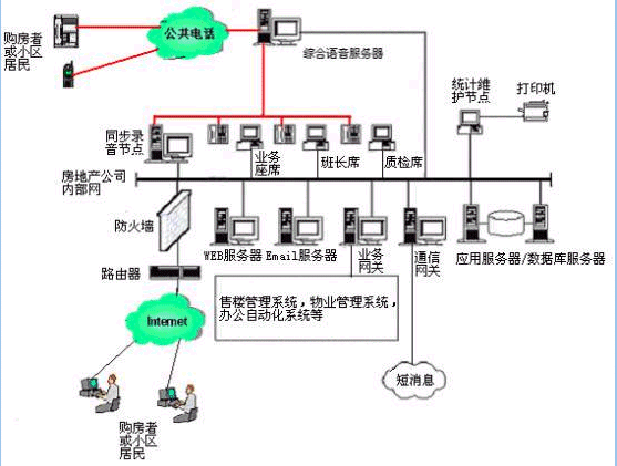 。。用戶利用電話、傳真、WEB、手機(jī)短信息、電子郵件等撥打某一特服號碼(如95xxx)進(jìn)入房地產(chǎn)多媒體客戶服務(wù)中心系統(tǒng),本系統(tǒng)依托房地產(chǎn)企業(yè)各類業(yè)務(wù)技術(shù)支持系統(tǒng),通過人工受理或自動(dòng)語音服務(wù)等方式為各類客戶提供購房和物業(yè)管理服務(wù);形成了對外服務(wù)于客戶,對內(nèi)管理、分析、決策系統(tǒng)相結(jié)合的呼叫中心。