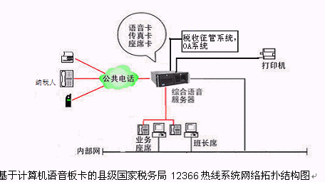對于縣級國家稅務(wù)局12366多媒體納稅服務(wù)熱線系統(tǒng),則建議使用基于計算機語音板卡的方式,可以減少投資,同時具有良好的系統(tǒng)性能;對于地市級-縣級國家稅務(wù)局12366多媒體納稅服務(wù)熱線系統(tǒng),可選用排隊交換機作為語音接入設(shè)備,以保障系統(tǒng)的高可靠性和穩(wěn)定性;大大提高了系統(tǒng)的適應面。