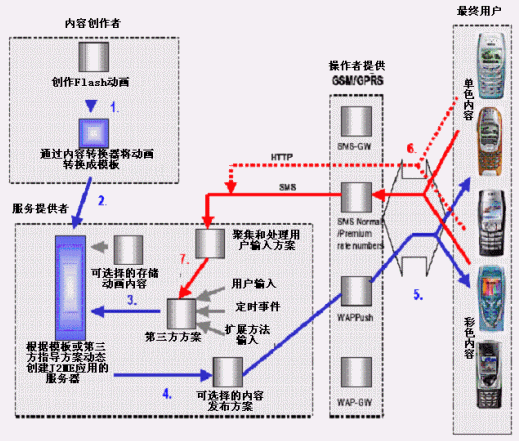 通過目前的2/2.5G網(wǎng)絡(luò)傳輸,運行Flash動畫轉(zhuǎn)換成的應(yīng)用程序不需要在手機(jī)上安裝特別的播放器軟件,只需要支持Java技術(shù)。 該方案可以用現(xiàn)有的網(wǎng)絡(luò)和J2ME設(shè)備,使用戶提前進(jìn)入多彩的無線世界,給用戶一個新的選擇。