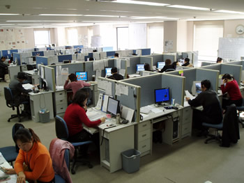 當(dāng)你站在這布局緊湊但井井有條、具有典型日式風(fēng)格的辦公大廳里,看到這些彬彬有禮的座席代表,耳邊又不時(shí)傳來(lái)各種聲調(diào)的日語(yǔ)時(shí),你會(huì)毫不懷疑地認(rèn)為自己是在東京或是橫濱的某個(gè)大公司的呼叫中心里。然而,從大廈的窗外望去,遠(yuǎn)處聳立的大連電視塔和眼前的勞動(dòng)公園都提醒你:這是在中國(guó)大連的商業(yè)區(qū)中心。