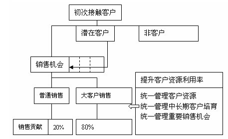 客戶信息的共享和利用不好:隨著企業(yè)業(yè)務(wù)的發(fā)展,一般會(huì)在產(chǎn)品線、行業(yè)(客戶群)、區(qū)域等發(fā)展和滲透,而客戶信息全部存在業(yè)務(wù)員和不同的業(yè)務(wù)部門,一方面客戶信息的規(guī)范沒有,離散,不可利用,另一方面無方法和機(jī)制保障各業(yè)務(wù)部門的共享和業(yè)務(wù)協(xié)同,通常會(huì)出現(xiàn)幾個(gè)業(yè)務(wù)部門搶同一個(gè)客戶;更可怕是業(yè)務(wù)調(diào)整和變動(dòng),以及人員的流動(dòng)造成客戶資源的流失,出現(xiàn)客戶管理的盲區(qū)。