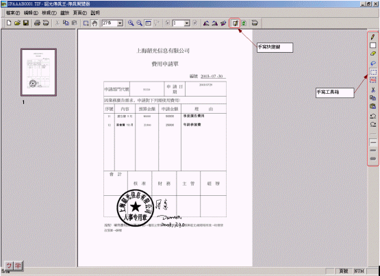 令王總最滿(mǎn)意的是,現(xiàn)在若遇到一些特定的文檔,如需手寫(xiě)/簽名的文檔契約,就不必將傳真件列印出來(lái),然后再簽名發(fā)送了,可直接用滑鼠(或手寫(xiě)板)在電腦上就可完成簽名了,大大提高了傳真伺服器的便利性,及文件的保密性真正實(shí)現(xiàn)了電腦化及無(wú)紙化的綠色辦公環(huán)境。
