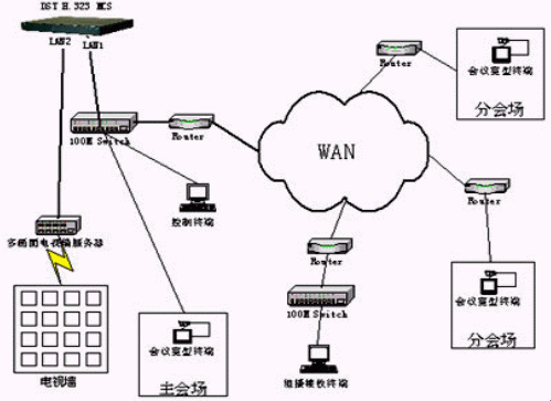 本次春蘭視頻會(huì)議系統(tǒng)基于已建成的寬帶廣域網(wǎng)上,通過接入設(shè)備來連接國(guó)內(nèi)各地分公司的會(huì)議電視終端,實(shí)現(xiàn)音、視頻及數(shù)據(jù)的實(shí)時(shí)交互傳輸。
