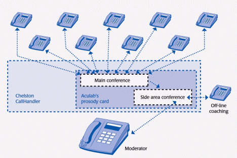 Chelston Call Systems 為RNIB 建立了基于CallHandler-720平臺、并附有錄音設(shè)施的會(huì)議橋。CallHandler-720是由Aculab Prosody DSP資源板卡集成的,采用開放的架構(gòu)并可通過萬維網(wǎng)進(jìn)行控制。