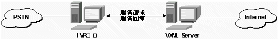 在這里VXML是指Voice XML的服務(wù)器,它負(fù)責(zé)接收IVR轉(zhuǎn)發(fā)過來的用戶按鍵請(qǐng)求,并返回信息數(shù)據(jù)和操作指令。