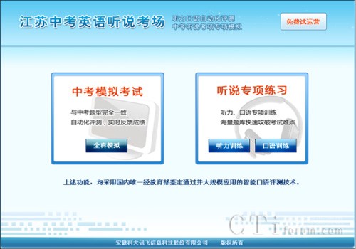 在“中考、高考英語(yǔ)聽(tīng)說(shuō)考場(chǎng)平臺(tái)”之外,科大訊飛還同步推出“互動(dòng)英語(yǔ)”系列學(xué)習(xí)產(chǎn)品,并提供用戶(hù)免費(fèi)試用。