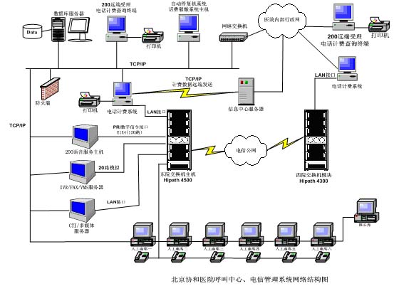 。。北京協(xié)和醫(yī)院呼叫中心及電信管理系統(tǒng)組網(wǎng)結構。