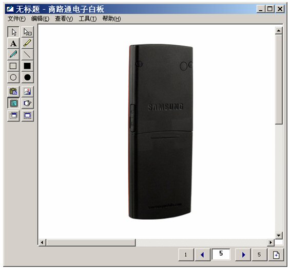 坐席進(jìn)入富媒體知識庫,調(diào)出三星手機(jī),啟動電子白板,將這個畫面推送給客戶。
