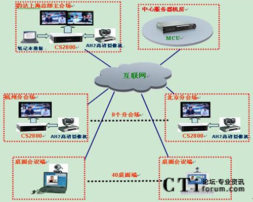 系統(tǒng)為每個點配置華平CS2800全高清視頻終端,它可以實現(xiàn)2路1080P全高清視頻輸入和4路1080P全高清視頻輸出,并且全面支持H.264 High Profile(level5)編碼技術,在視頻精度提高一倍的情況下,所需帶寬減半,實現(xiàn)全動態(tài)1080P視頻傳輸僅需1M的帶寬,配合華平高清MCU,可在韻達快運現(xiàn)有的網(wǎng)絡條件下實現(xiàn)全公司的全高清視頻會議,實現(xiàn)高清、高效溝通。