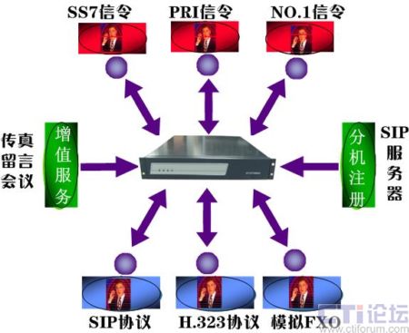 傳統(tǒng)信令協(xié)議方式包括N0.7信令、NO.1信令、ISDN-、 FXO(環(huán)路中繼)VOIP 信令協(xié)議包括SIP、H.323,同時支持多種協(xié)議/多種中繼的接入,不用增加、更換任何硬件設(shè)備和任何配件即可靈活地實(shí)現(xiàn)傳統(tǒng)交換機(jī)與軟交換網(wǎng)絡(luò)的無縫連接,為企業(yè)實(shí)現(xiàn)IP通信降低了門檻。