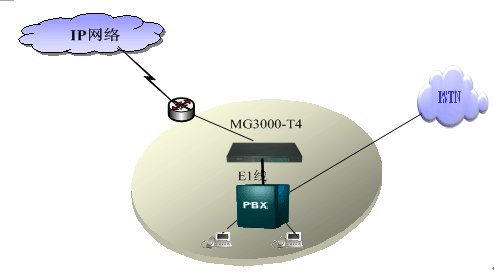 MG3000-T4提供1、2、4E1中繼,直接提供數(shù)字中繼口和PBX交換機(jī)對接,PBX交換機(jī)原有的撥號習(xí)慣和撥號方式不做改變,可以通過路由選擇的方式來走原來的PSTN網(wǎng)絡(luò)或者IP網(wǎng)絡(luò),同時通過MG3000-T4來做電路交換和IP網(wǎng)的分組交換的轉(zhuǎn)換,實現(xiàn)該分支機(jī)構(gòu)和其他分支機(jī)構(gòu)的互連互通。
