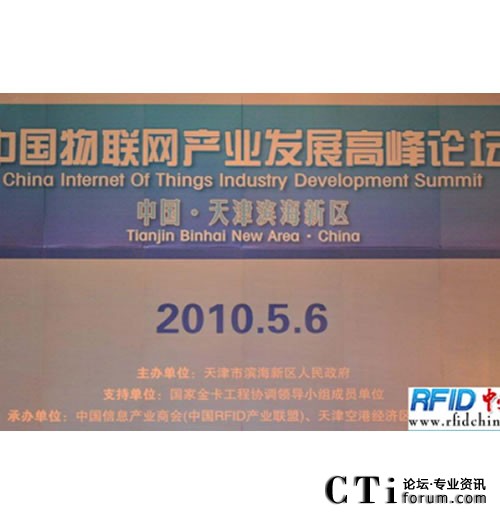 CTI論壇(ctiforum)5月12日消息(記者 楊佳林):2010年5月6日,“中國物聯(lián)網(wǎng)產(chǎn)業(yè)發(fā)展高峰論壇”在天津濱海新區(qū)成功召開,本次高峰論壇是在國家金卡工程協(xié)調領導小組是多個成員部位的共同支持下,由天津市濱海新區(qū)人民政府主辦,中國信息產(chǎn)業(yè)商會(中國RFID產(chǎn)業(yè)聯(lián)盟)和天津濱?崭劢(jīng)濟區(qū)管委會共同承辦。中國電子學會會長、原信息產(chǎn)業(yè)部部長吳基傳,工業(yè)和信息化部總經(jīng)濟師周子學天津市委副書記、濱海新區(qū)區(qū)委書記何立峰,天津市副市長王治平、天津市濱海新區(qū)區(qū)長宗國英以及中國信息產(chǎn)業(yè)商會會長、中國RFID產(chǎn)業(yè)聯(lián)盟理事長張琪等相關領導出席論壇活動。大唐高鴻作為中國RFID產(chǎn)業(yè)聯(lián)盟副理事長單位,公司副總經(jīng)理兼物聯(lián)網(wǎng)工作組組長侯玉成應邀出席了大會。