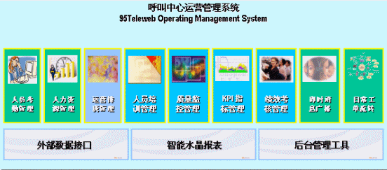 Teleweb-OMS運(yùn)營(yíng)管理系統(tǒng)共有11個(gè)模塊,涵蓋了動(dòng)態(tài)質(zhì)檢管理、培訓(xùn)管理、考勤管理、人力資源管理、話務(wù)預(yù)測(cè)與自動(dòng)排班、KPI管理、績(jī)效考核、部門(mén)間的需求單管理等各個(gè)環(huán)節(jié),并且提供了外部數(shù)據(jù)抽取功能和報(bào)表自動(dòng)生成功能。