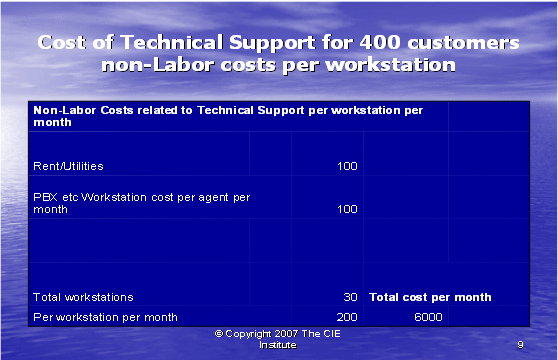 最后,我們可以如同下面圖表10所示,把所有的信息放在一起。每個(gè)客戶的技術(shù)支持的實(shí)際成本包括間接人工成本和工作場地成本,這是服務(wù)一個(gè)客戶所花費(fèi)成本的正確的反映。