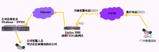 直接使用多模擬中繼線和模擬用戶線的網(wǎng)關,將該網(wǎng)關通過Internet注冊到IPPBX上。這樣您既可以撥打原有的PSTN電話,又可以撥打VoIP電話。