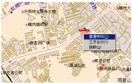 - 可視化指揮調(diào)度:在電子地圖上點(diǎn)擊相應(yīng)的圖標(biāo)即可撥打警力單位的固定電話以及向GPS巡邏車以及集群終端/公安分局/派出所/聯(lián)動(dòng)單位電話號碼/手機(jī)號碼發(fā)起單呼和組呼;同時(shí)與接處警席配合使用,可以實(shí)現(xiàn)可視化指揮調(diào)度與非可視化指揮調(diào)度的全方位立體的混合指揮調(diào)度。