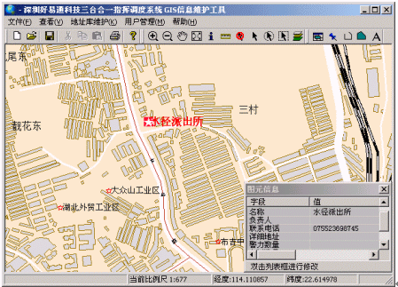 好易通三臺合一指揮調(diào)度警用地理信息子系統(tǒng)是好易通三臺合一指揮調(diào)度系統(tǒng)的一個(gè)重要組成部分,主要參考《警用地理信息系統(tǒng)建設(shè)規(guī)范》以及公安部《縣、市級公安機(jī)關(guān)"三臺合一"接處警系統(tǒng)技術(shù)規(guī)范》設(shè)計(jì),基于MapInfo平臺開發(fā),接處警人員可運(yùn)用該子系統(tǒng)對案發(fā)地點(diǎn)進(jìn)行多中定位(模糊定位、輔助定位),多種查詢及多種調(diào)度。