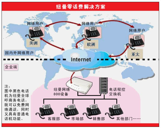 電話(huà)通訊技術(shù)發(fā)明以來(lái)最震撼的革命——零話(huà)費(fèi)解決方案由紐曼開(kāi)始,該方案由紐曼全球呼智能商務(wù)電話(huà)和網(wǎng)絡(luò)800組成,操作簡(jiǎn)單、音質(zhì)清晰,通話(huà)雙方用普通電話(huà)機(jī)實(shí)現(xiàn)免費(fèi)通話(huà)。